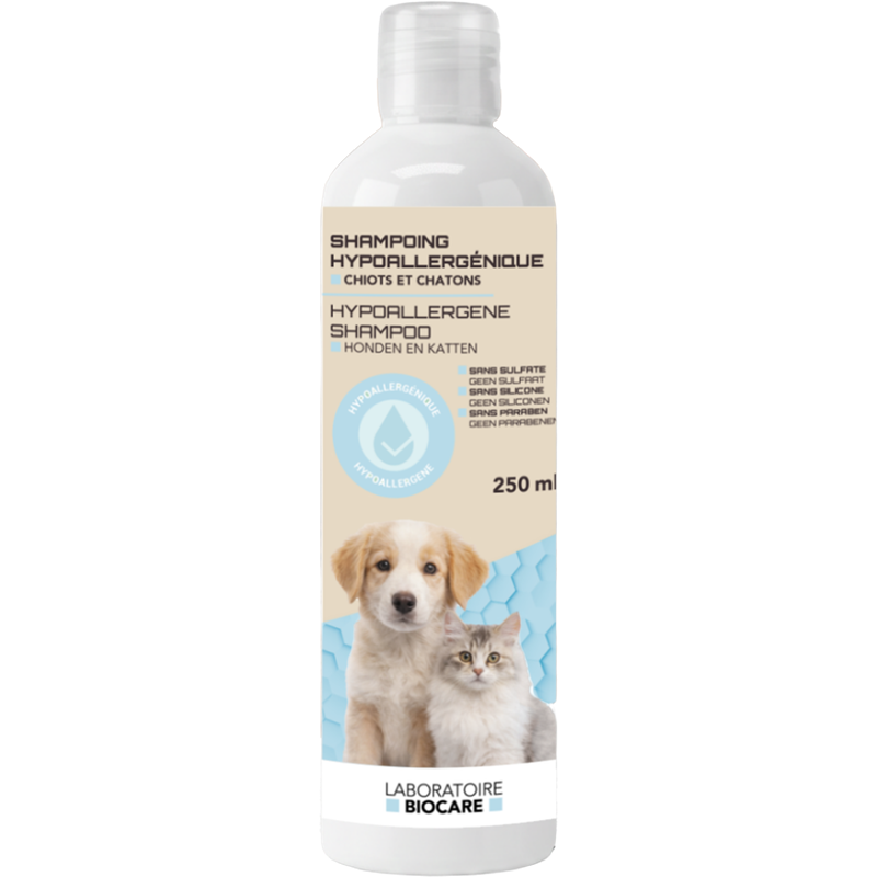 Șampon hipoalergenic pentru pui de câine și pisică. Curăță delicat, nu ustură ochii și protejează pielea sensibilă. Cu alantoină, fără parabeni, coloranți și siliconi. Ideal pentru utilizare frecventă.
